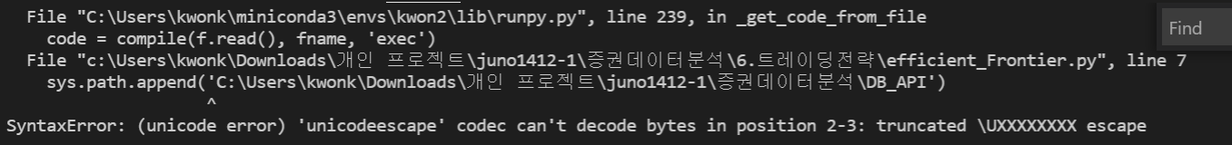 SyntaxError: (unicode error) 'unicodeescape' codec 에러 발생