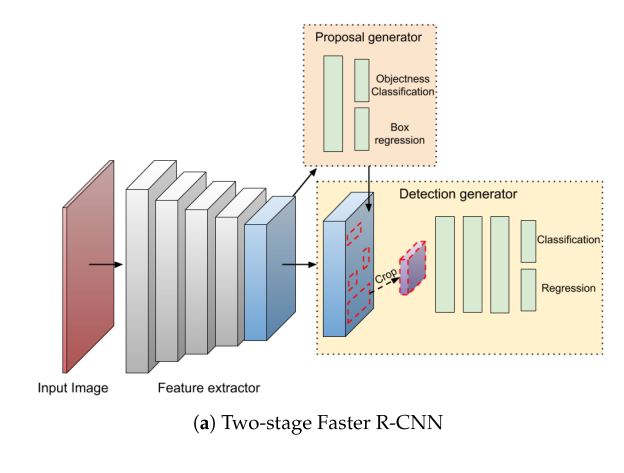 Two-stage Faster R-CNN구조는 객체가 어디있는지 탐지하는 Localization 기능과 Bounding-box로 객체를 Detect하는 기능 2가지를 따로 구현한 뒤에, 2가지 기능을 합해서 Detection generator를 수행할 수 있었습니다.