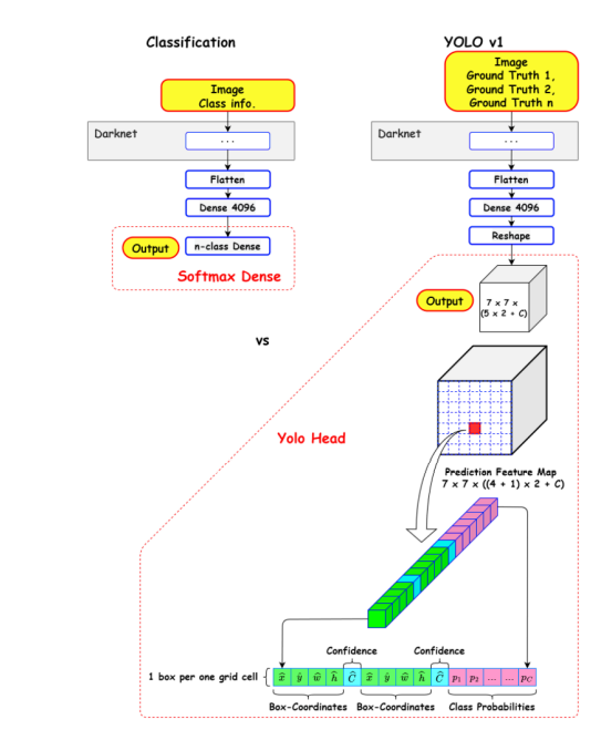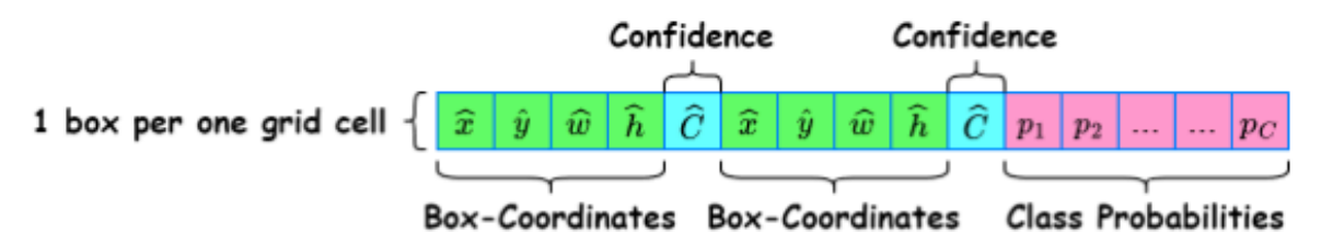 각각 Box-Coorinates에서 얼마나 어떤 class의 객체에 가까운지 Confiedent %로 나타내게 된다.