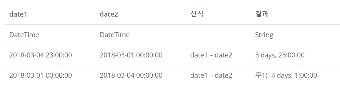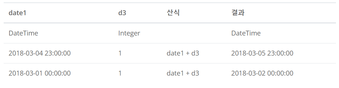 DateTime 형식을 가지는 2개의 value 또는 1개의 value와 integer 간의 산식