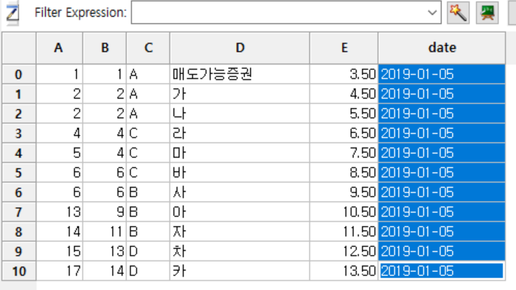 모든 날짜 컬럼에 2019-01-05가 입력된 것을 확인할 수 있다.
