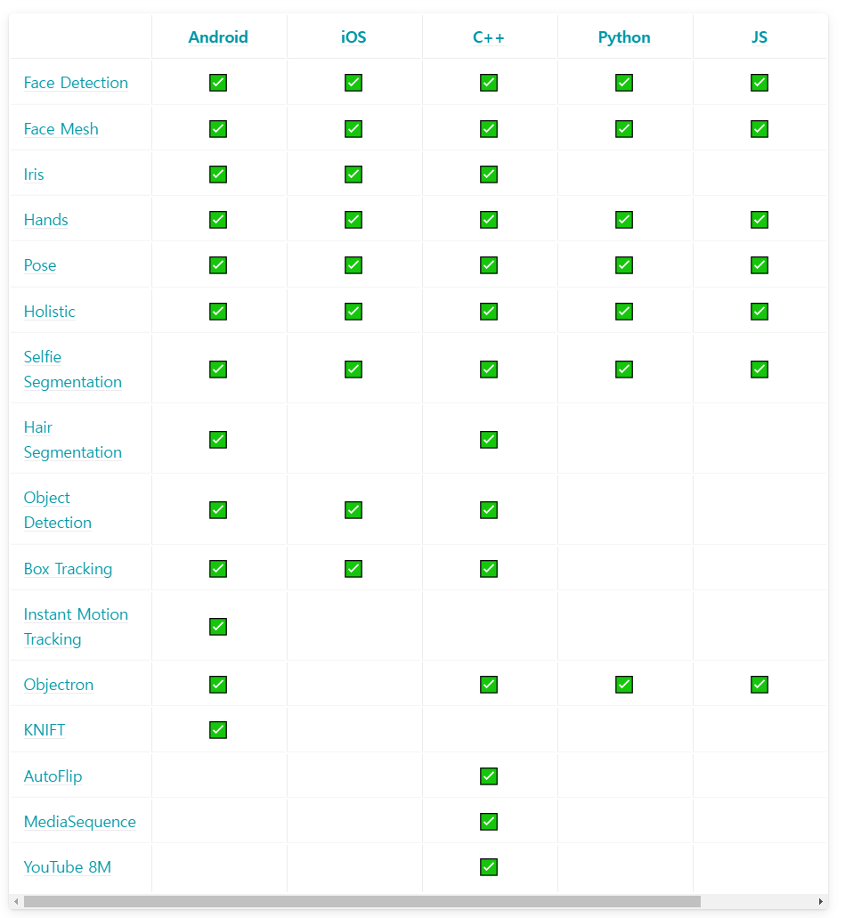 Mediapipe의 제공 솔루션