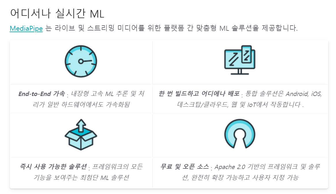 MediaPipe란 구글에서 제공하는 AI Framework이다.