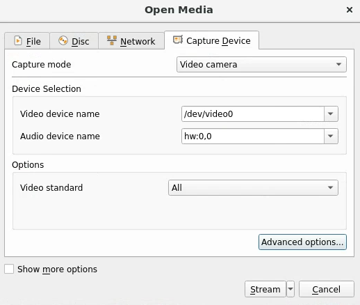 - Video device name : /dev/video0(웹캠 경로)를 입력한다.