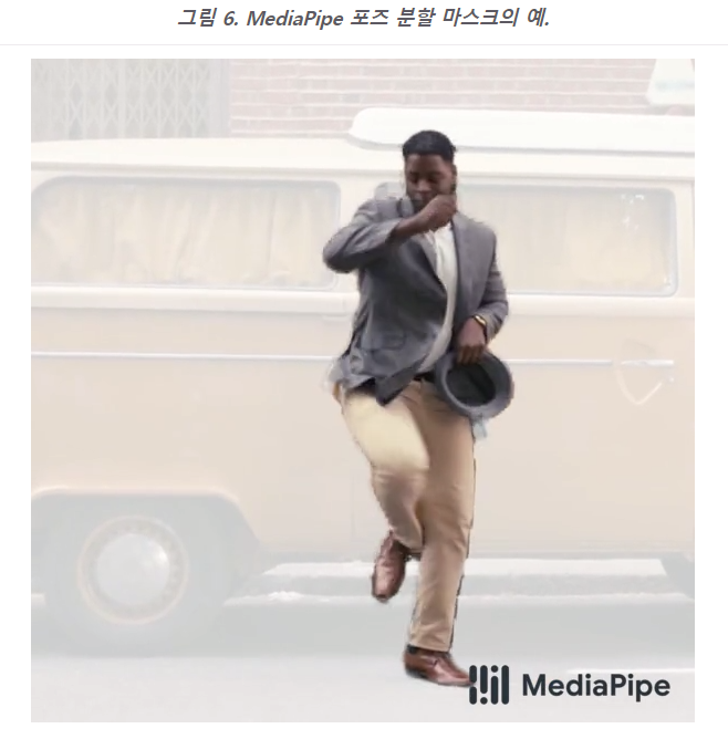 segmentation mask란 분할 마스크로 pose estimation 수행 시, parameter인 [enable_segmentation]이 설정되어야만 출력되는 분할 마스크이다.