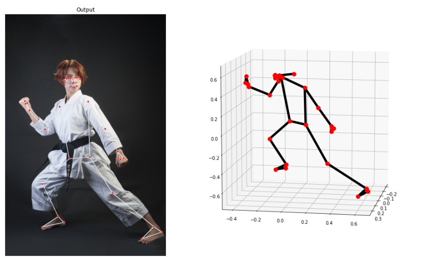 - z 좌표 값 : 엉덩이 중간지점 깊이를 원점으로 하는 랜드마크 깊이를 나타냄. 값이 작으면 카메라에 가까워지고 x좌표와 같은 척도를 사용하는 좌표값. 엉덩이 중심점과 카메라와의 거리 측정 후 0.0 ~ 1.0 사이값으로 정규화된 랜드마크 좌표