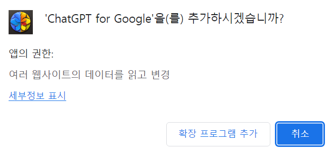 아래 링크에서 ChatGPT for Google을 다운로드 받아서 사용하실 수 있답니다.