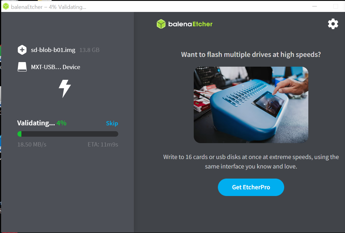 balena Etcher를 다운로드 받아 실행시키면 usb에 image sd card를 flash 시킬 수 있다.