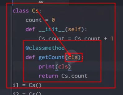 classmethod로 정의한 getCount는 첫번째 인자(매개변수) cls는 method가 소속된 class가 가르키는 값을 첫번째 인자로 주어야함.