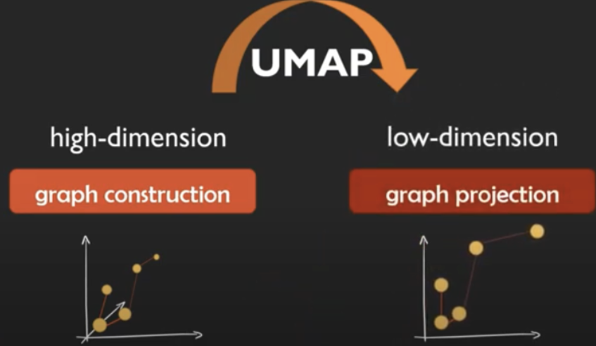 - high dimension space 에서의 데이터를 graph로 만들고, low dimension 으로 graph projection한다 (이 전 과정이 유효하다고 수학적으로 증명돼있다고 함)