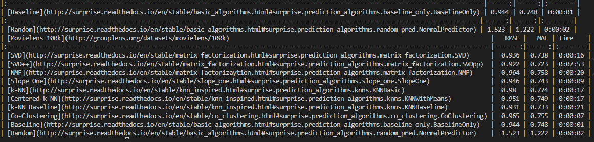 classes = (SVD, SVDpp, NMF, SlopeOne, KNNBasic, KNNWithMeans, KNNBaseline,