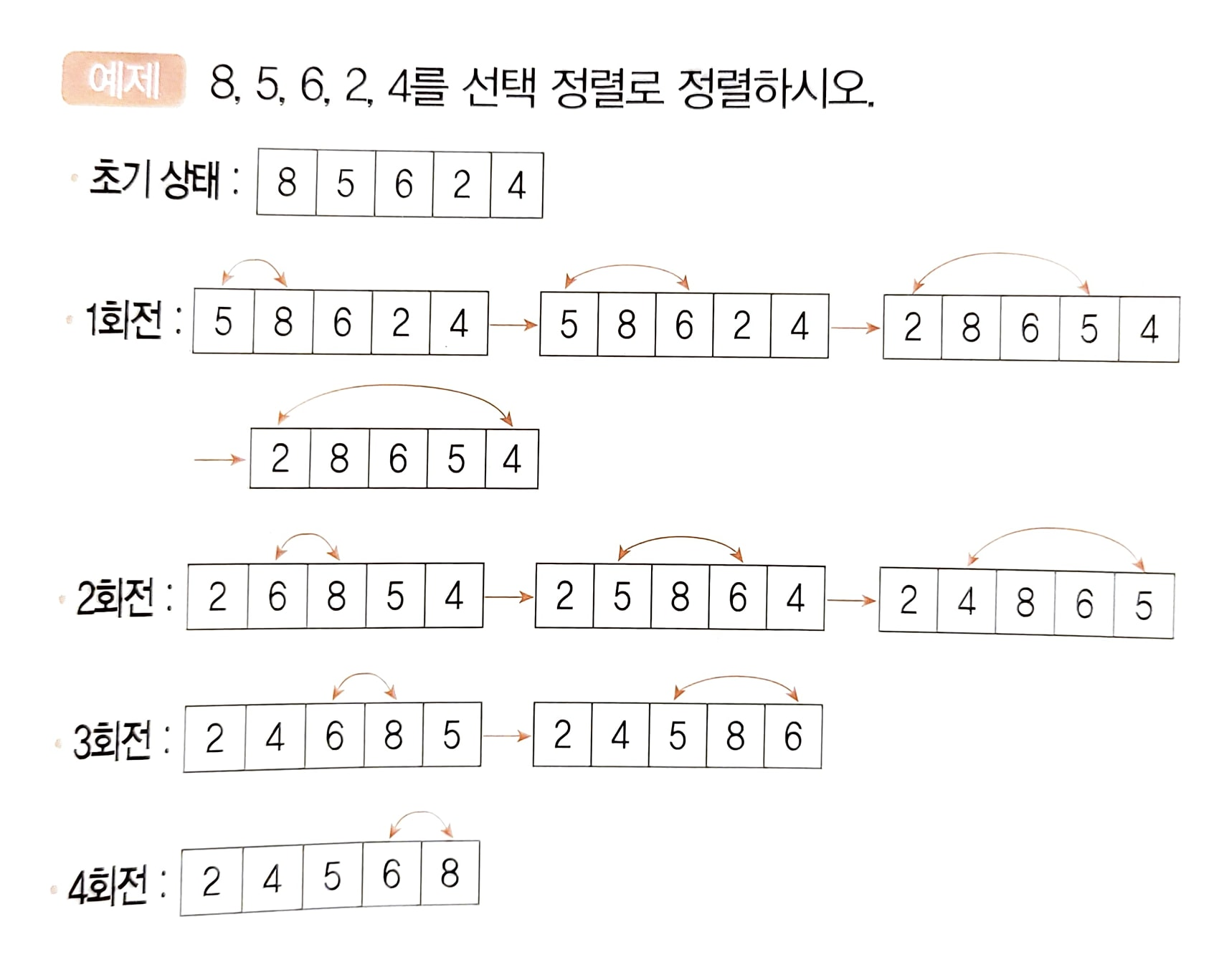 - n개의 레코드 중에서 최소값을 찾아 첫번째 레코드 위치에 놓고, 나머지 n-1개 중 다시 최소값을 찾아 두 번째 레코드 위치에 놓는 방식을 반복하여 정렬하는 방식이다.