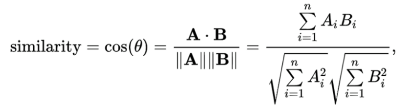 Cosine Similarity는 2가지 vector의 코사인 각도를 계산하여 유사성을 측정하는 방법이다.