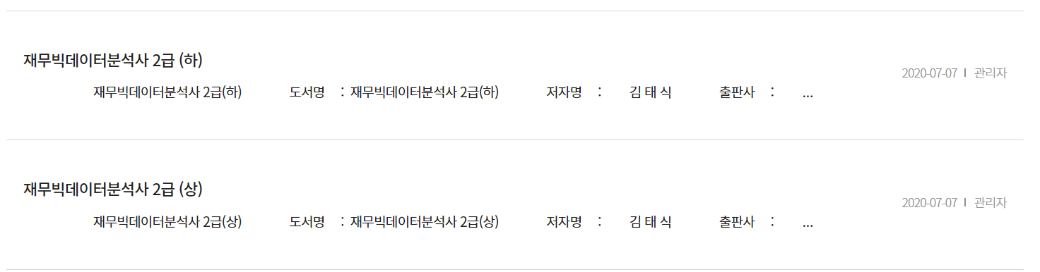 | 재무빅데이터분석사(FDA 2급) - 데이터베이스 시스템 개요 PART1 #1 (1) | 2022.12.02 |