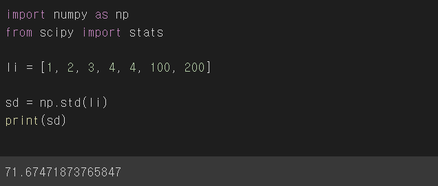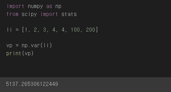 리스트 li의 표본분산의 변수 vs는 5993.4751의 값이 나온다.