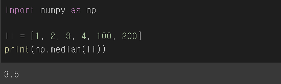 : 중앙값(중위수)는 list에 극단적인 값이 포함되어 있는 경우 평균에 큰 영향을 줄 수 있으므로 극단적인 값의 영향을 피하기위해 이용된다.