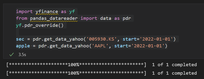 ③ 야후 파이낸스에서 삼성전자와 APPLE 주식 데이터 가져오기