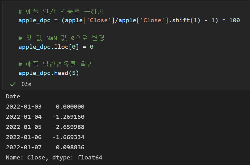 # 애플 일간 변동률 구하기