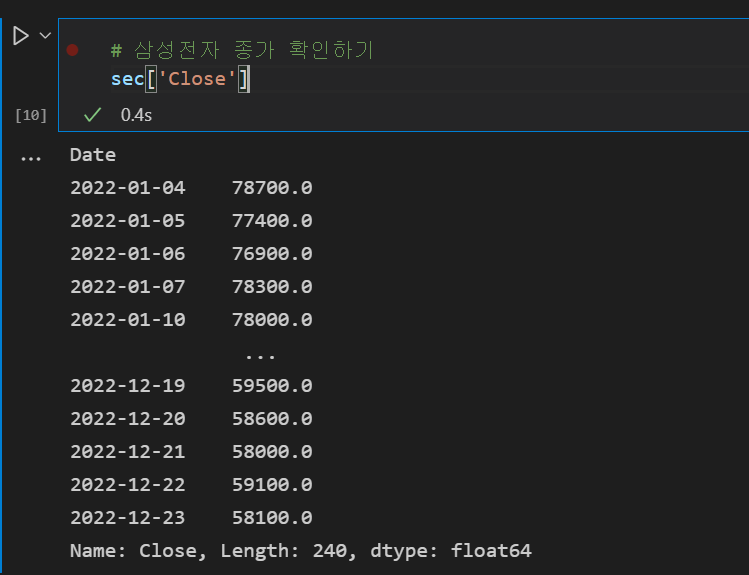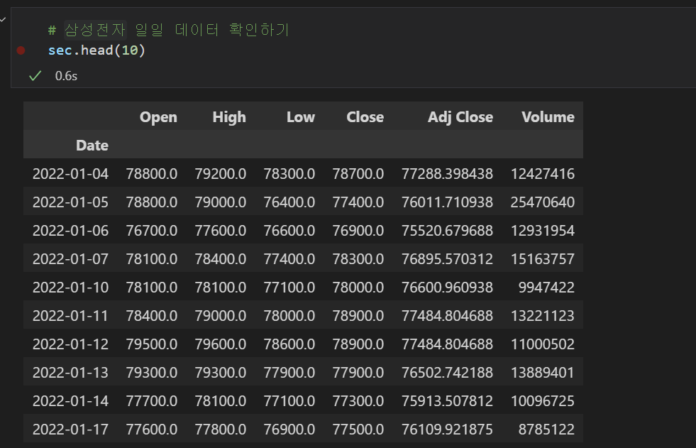 - 삼성전자 주가 확인하기 : 2022년 1월 1일부터 주가 데이터 확인이 가능하다