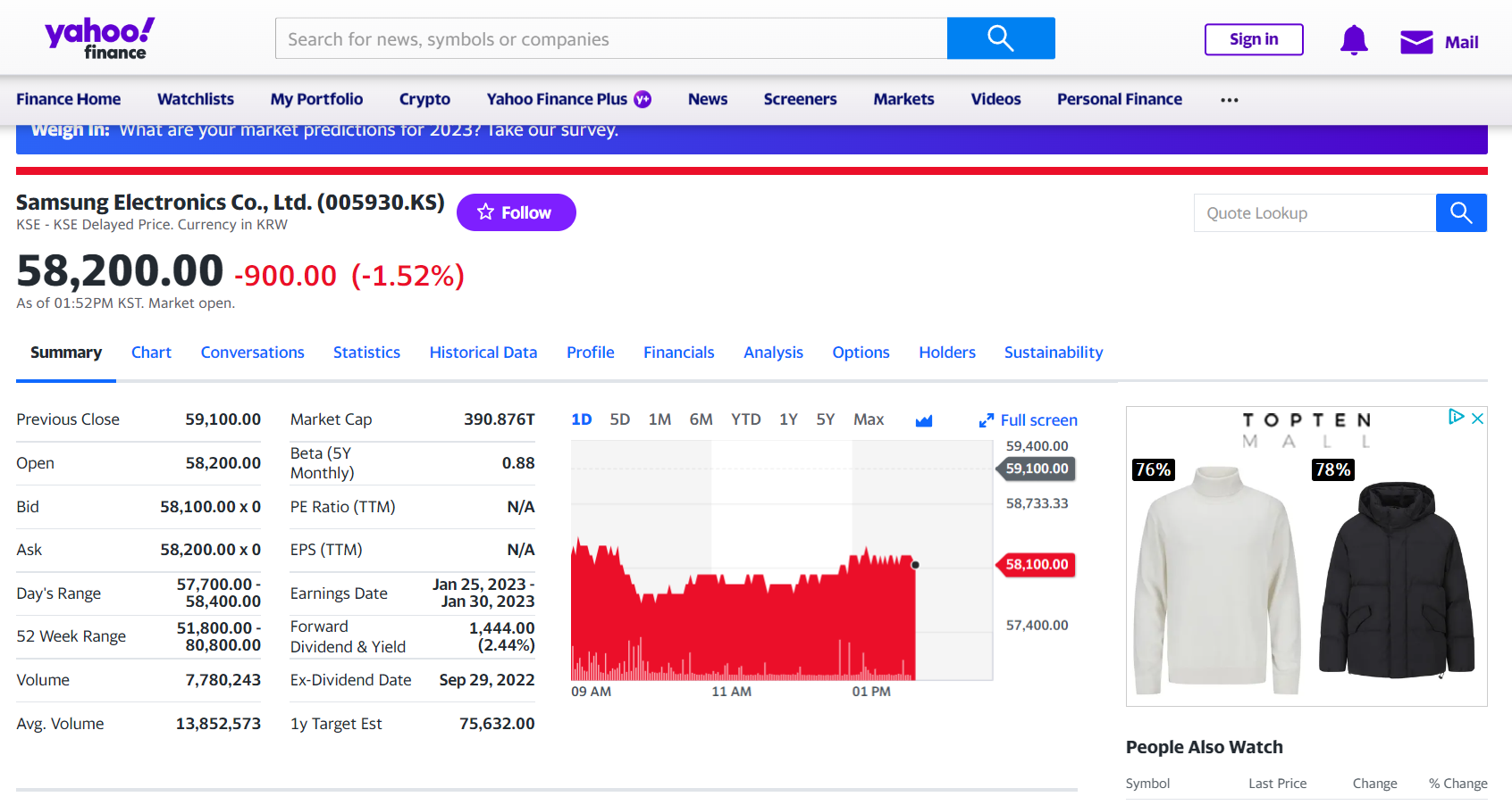 - 삼성전자 : 005930.KS