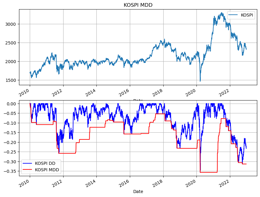 max_dd는 마이너스 값이기에 최저치가 바로 KOSPI MDD 값이 된다.